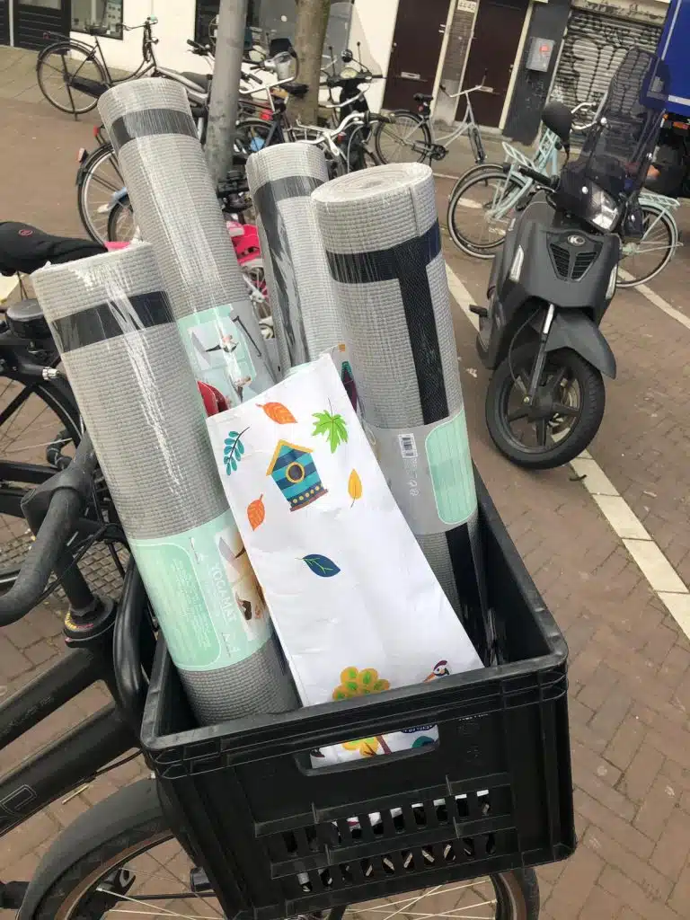 #1 thuiswerk toolkits voor de fietsenmakers #2 schetsboeken voor de meubelmakers #3 naaisetjes voor de kledingmakers #4 yogamatjes voor de dagopvang in Noord #5 fietsen uitdelen voor de overtocht van Zuid naar Noord